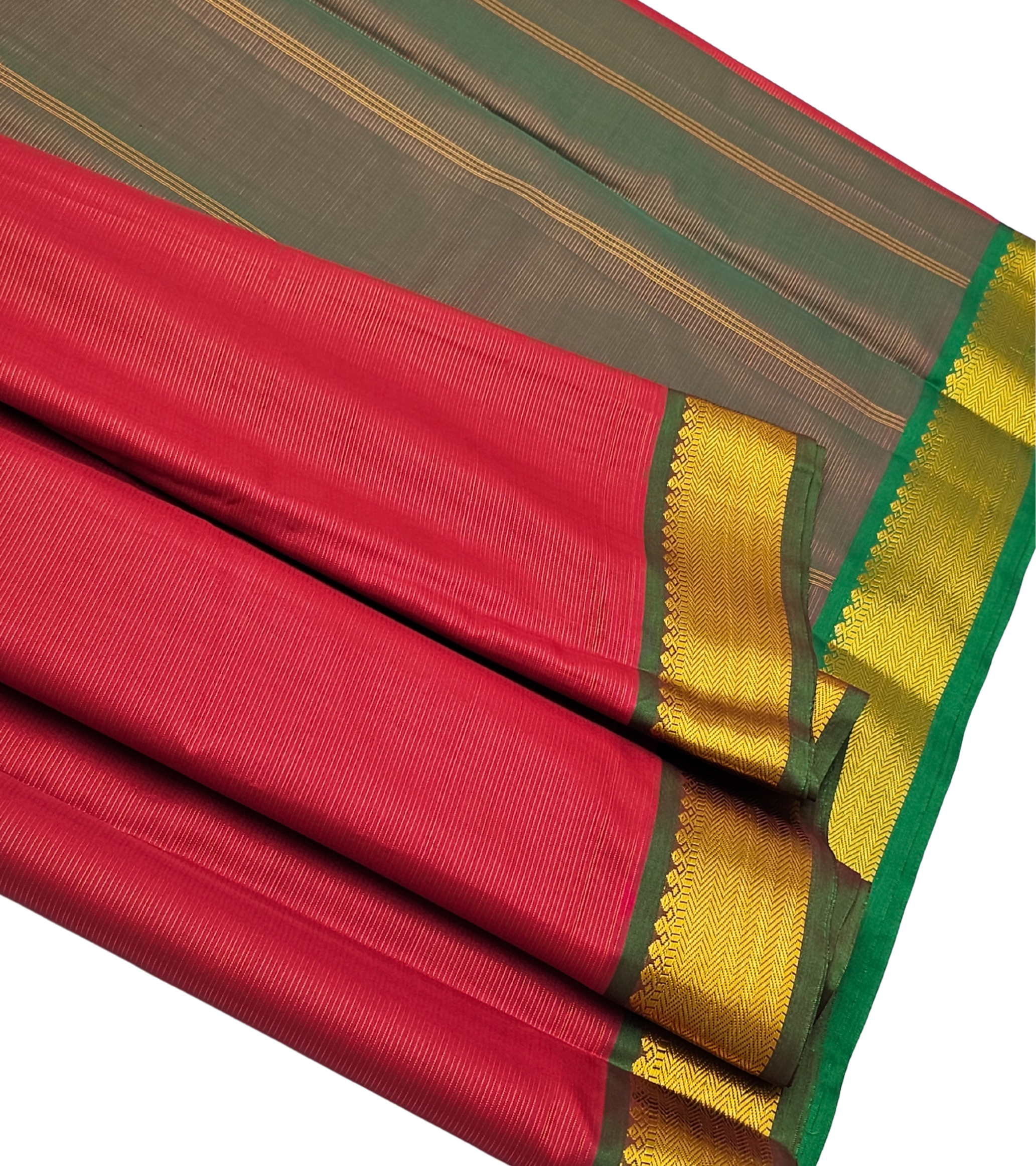 “Grace that whispers tradition ✨—this semi soft silk saree blends vibrant red charm with an elegant green-gold border for a timeless drape. Perfect for making every occasion a picture of poise and beauty ❤️💛.”