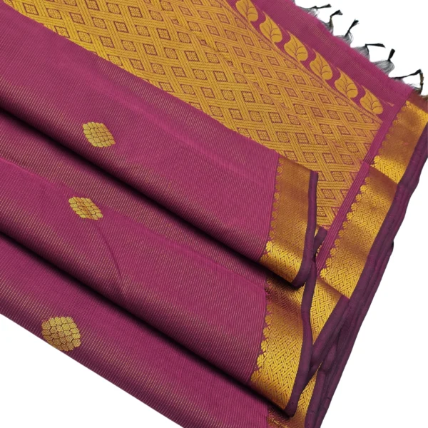 “Rich maroon paired with an enchanting grey pallu and gleaming golden-green border – this semi soft silk saree is grace redefined. 🌟 A flawless choice for weddings and grand celebrations! 💫”