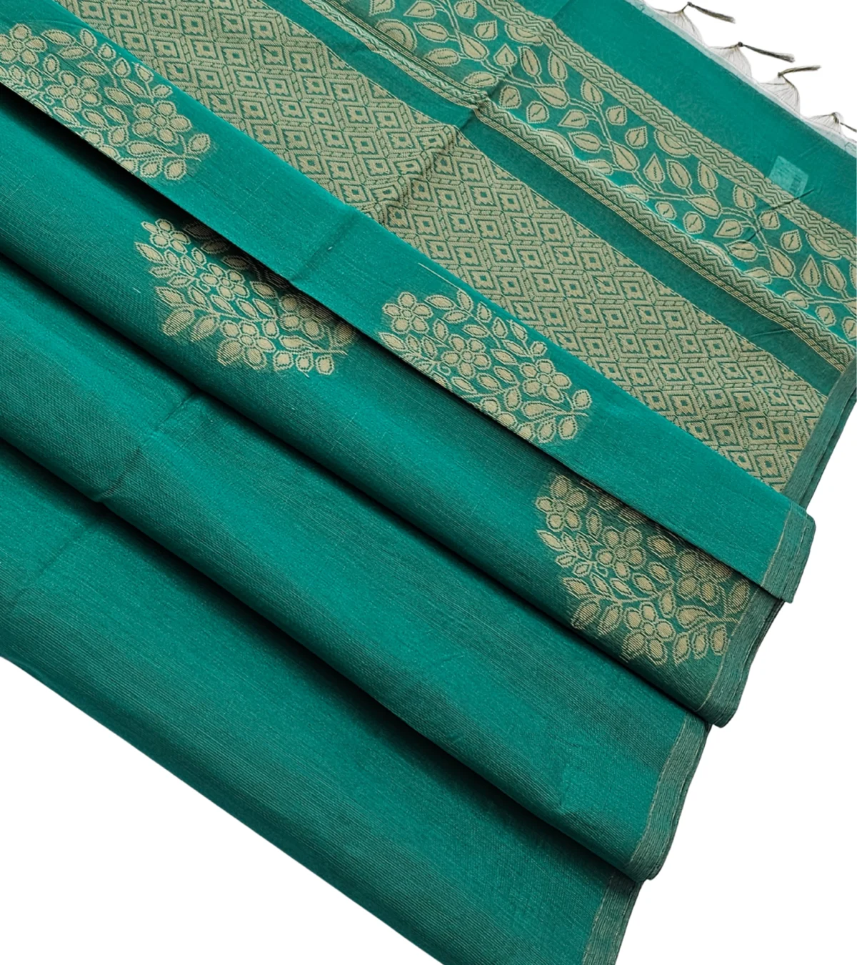 Radiant green, this handloom silk saree shines with elegant golden motifs that whisper tradition and grace. 🌿✨ Perfect for festive occasions, it blends timeless beauty with rich cultural charm.