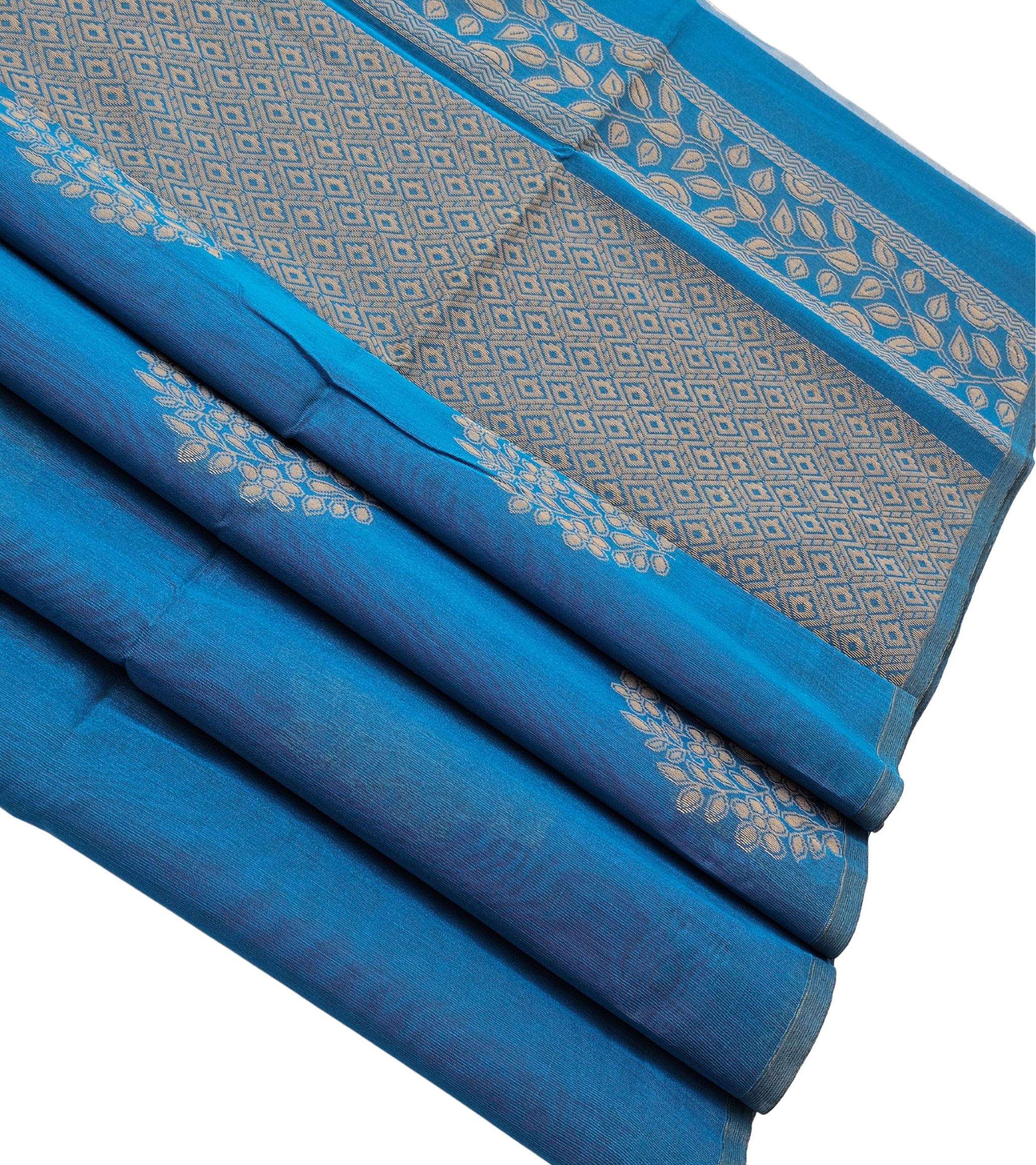 Attractive Blue , this handloom silk saree shines with elegant golden motifs that whisper tradition and grace. 🌿✨ Perfect for festive occasions, it blends timeless beauty with rich cultural charm.