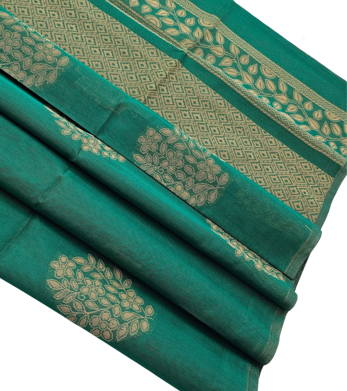 Radiant in lush green, this handloom silk saree shines with elegant golden motifs that whisper tradition and grace. 🌿✨ Perfect for festive occasions, it blends timeless beauty with rich cultural charm.