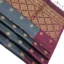 This exquisite Semo silk saree features a deep magenta base adorned with elegant silver swirl and floral motifs, beautifully contrasted by a rich green pallu with delicate silver paisley designs. A perfect blend of tradition and sophistication, ideal for festive and formal occasions.