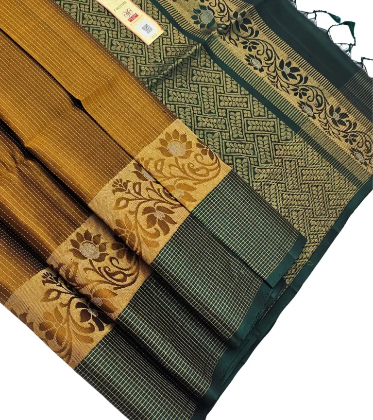 Drape yourself in timeless elegance with this rich green and antique gold saree that speaks pure tradition.