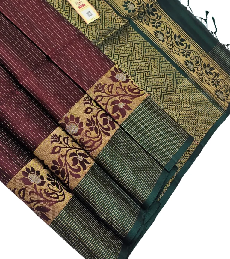 Intricate golden zari weaving adds a touch of timeless tradition to every drape.