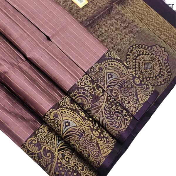 A deep wine purple body paired with an elegant beige border creates a stunning royal look.