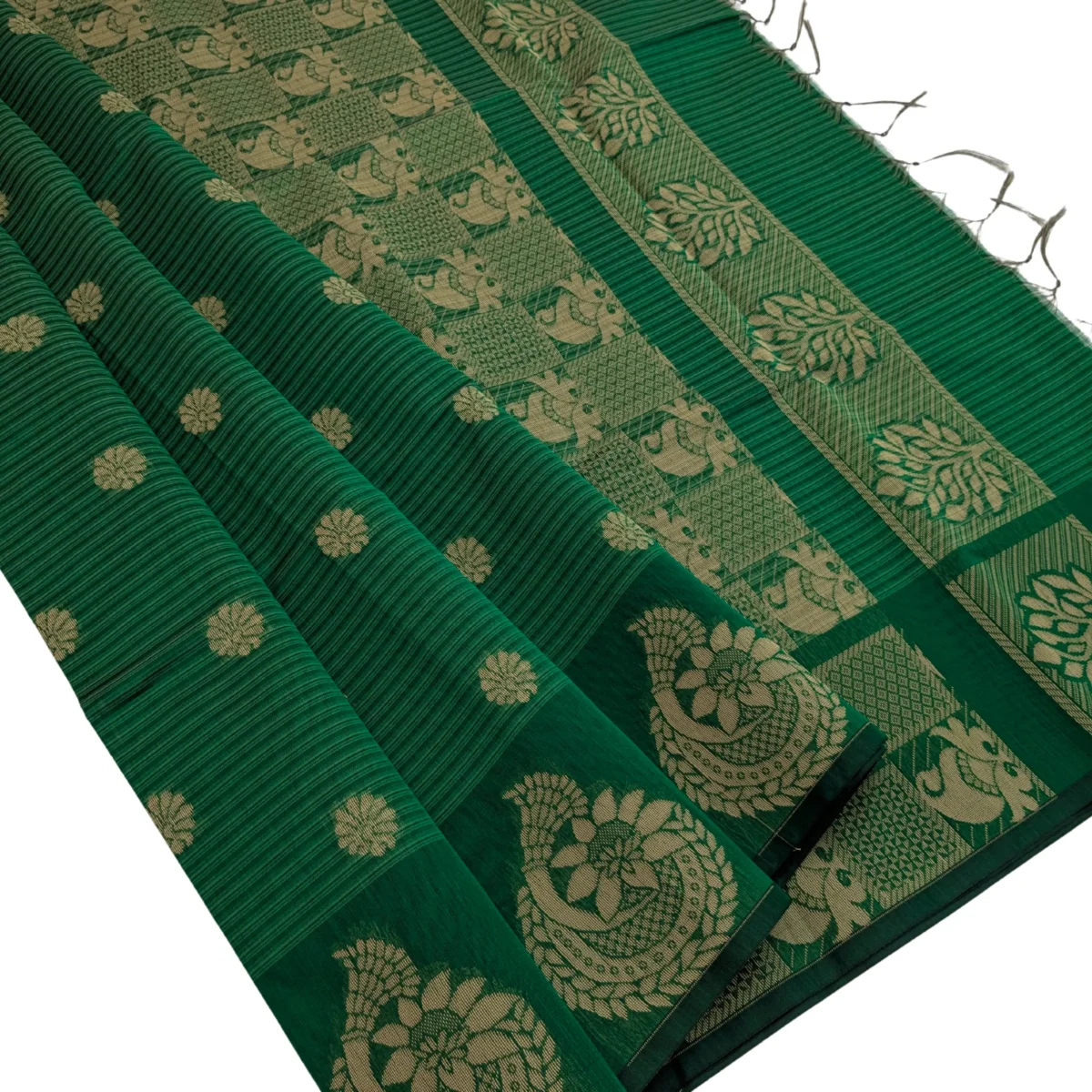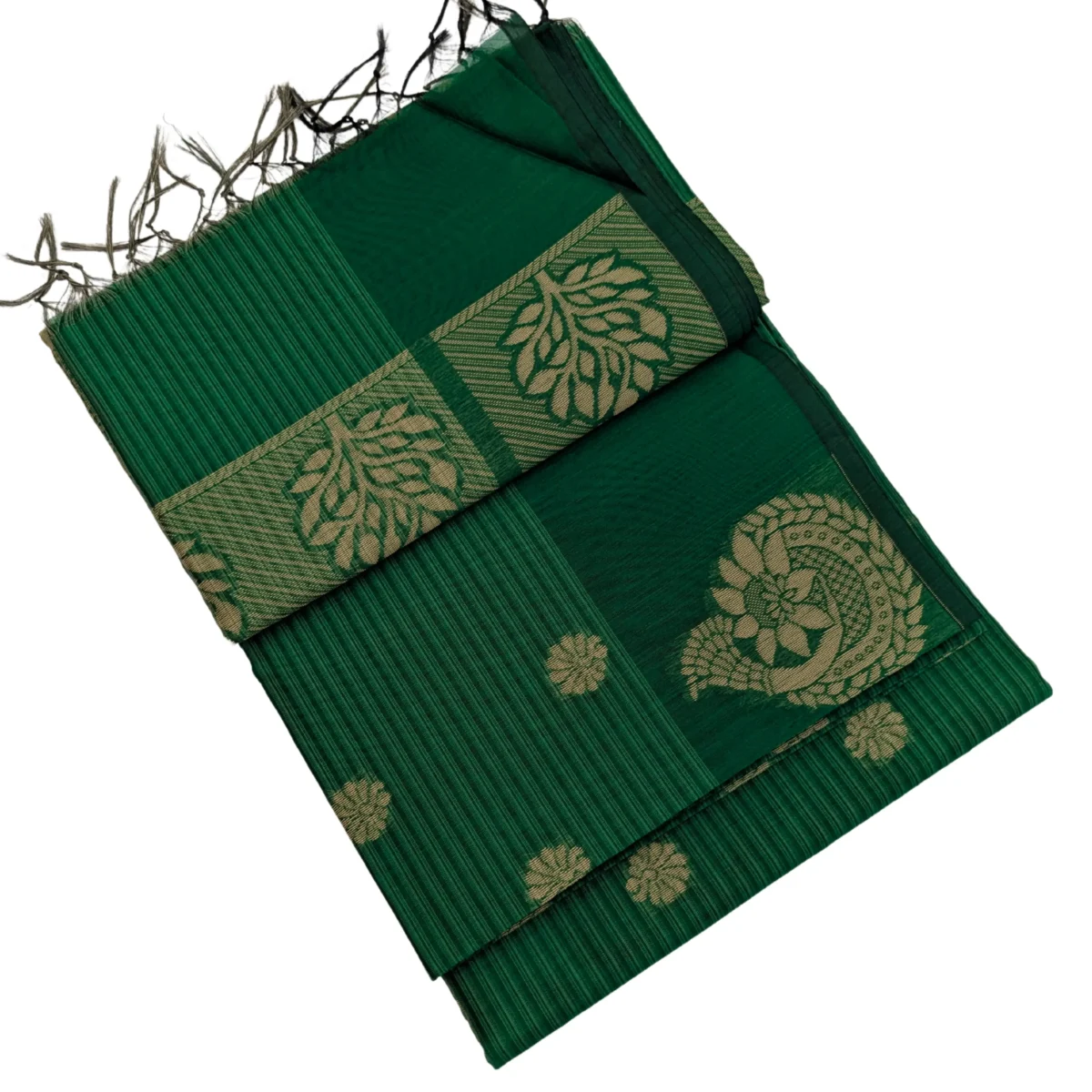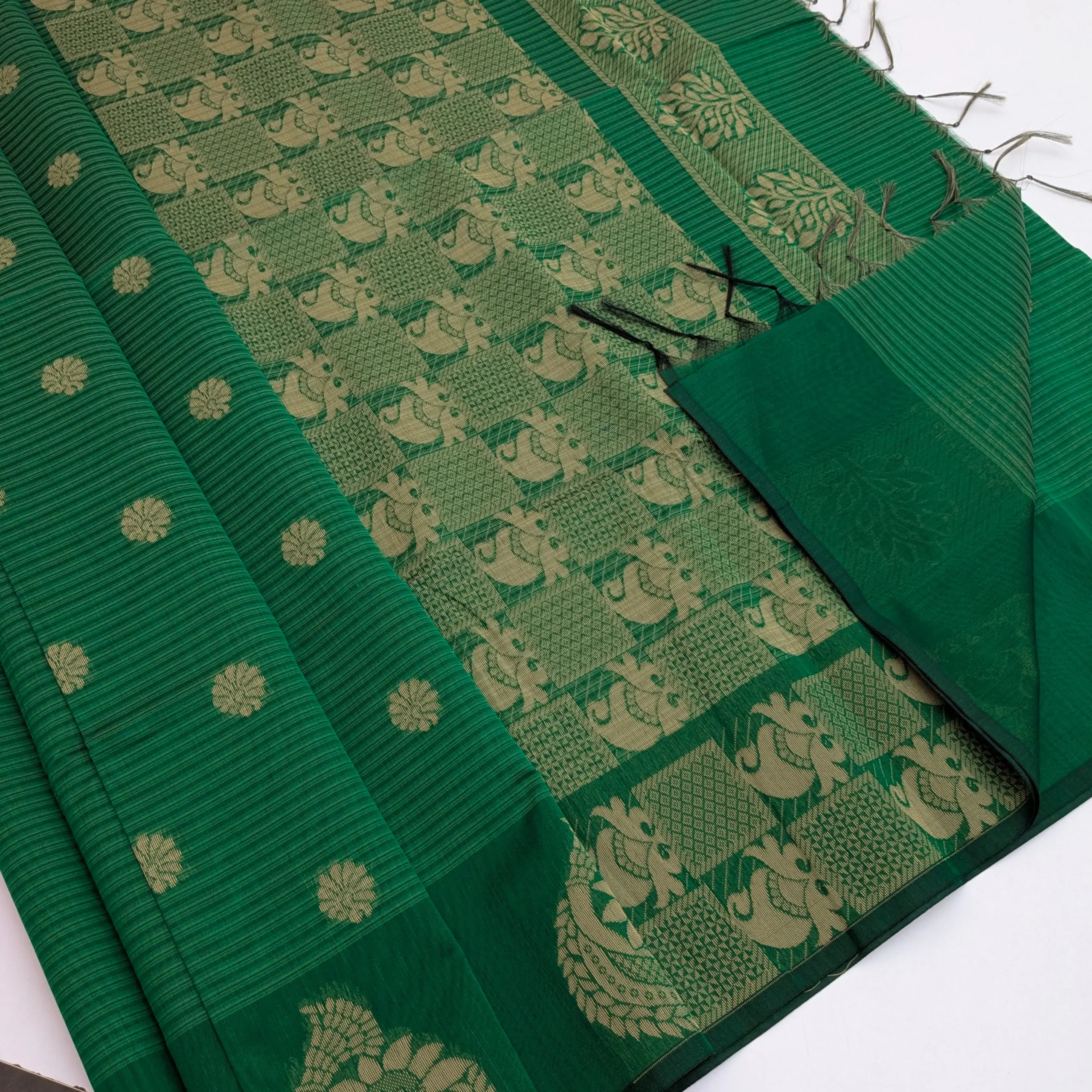 “Be the showstopper in our Green semi-silk cotton sarees, where timeless elegance meets modern allure.”