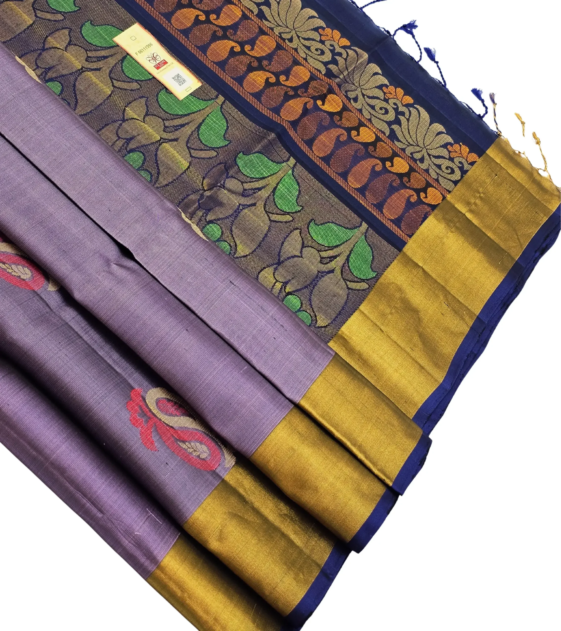 Grace meets tradition in this elegant handloom silk saree, adorned with rich floral motifs and a striking contrast border.