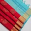 Rich red meets refreshing aqua in this Handloom soft silk saree, highlighted with elegant golden motifs and a graceful zari border.