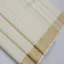 Pure and graceful, this off-white pure cotton saree is enhanced with soft gold borders and delicate striped accents.