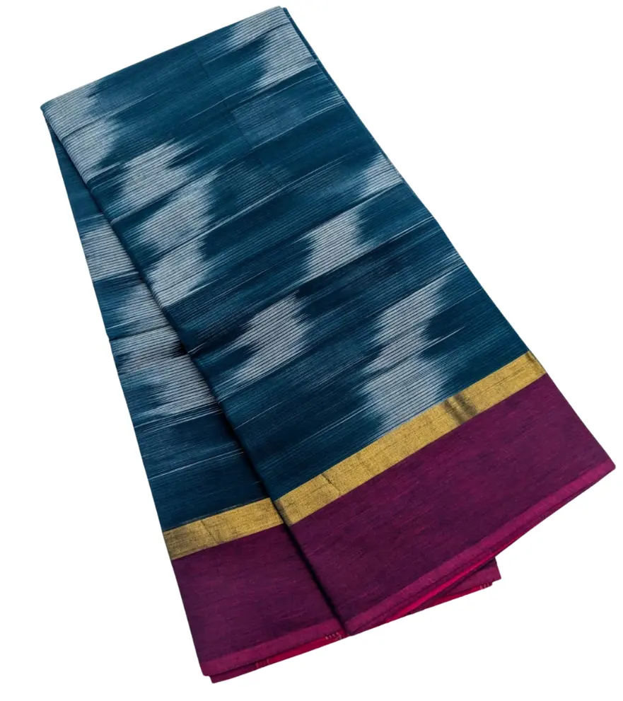 PEACOCK BLUE COLOR IKKATH COTTON SAREE