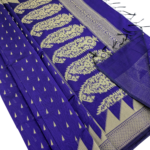 This elegant Royal Blue color semi-silk cotton saree features delicate diamond buttas throughout, creating a timeless and refined look. Paired with a plain blouse and easy-care fabric, it’s perfect for effortless everyday elegance.