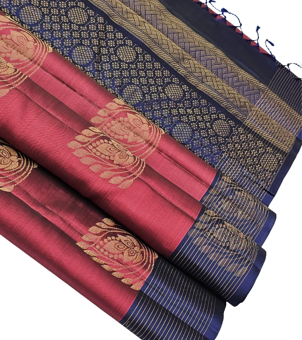 Material: Handloom Made Double warp Contrast Strips Border Soft Silk Sarees